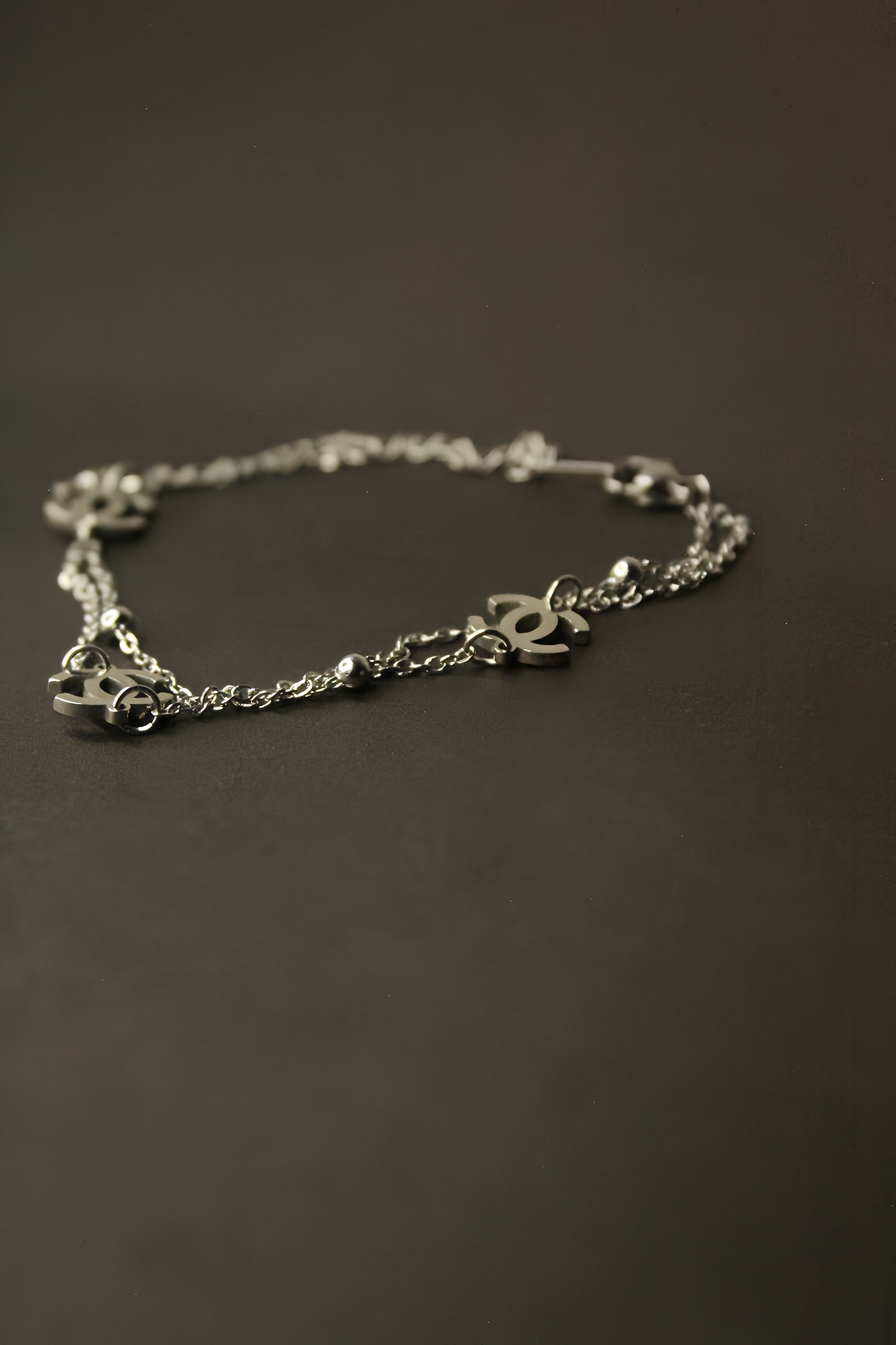 Stylish silver chain with a sleek charm.