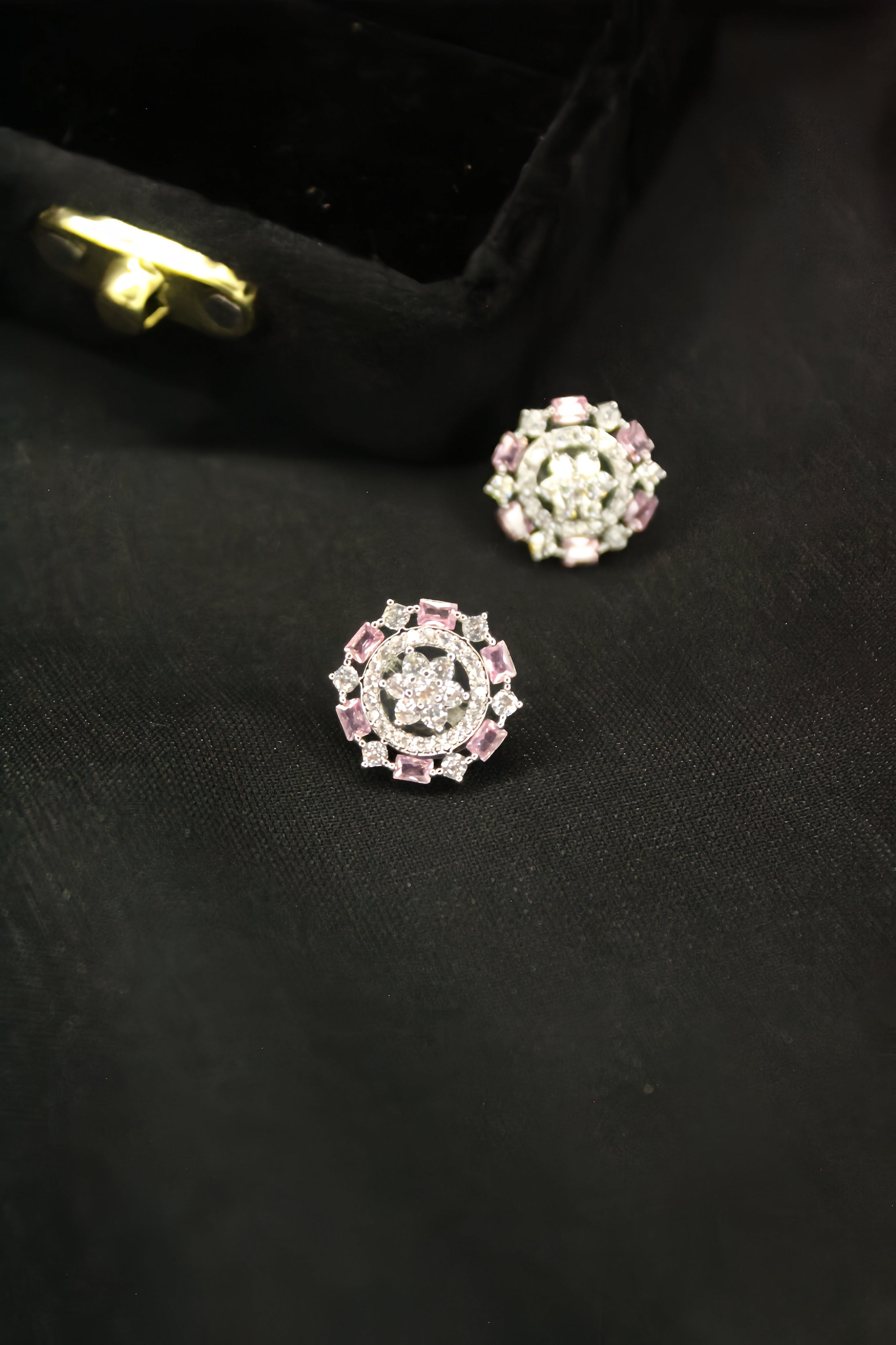 Designed in an eye-catching floral burst pattern, these earrings feature a dazzling center of transparent crystal-white stones