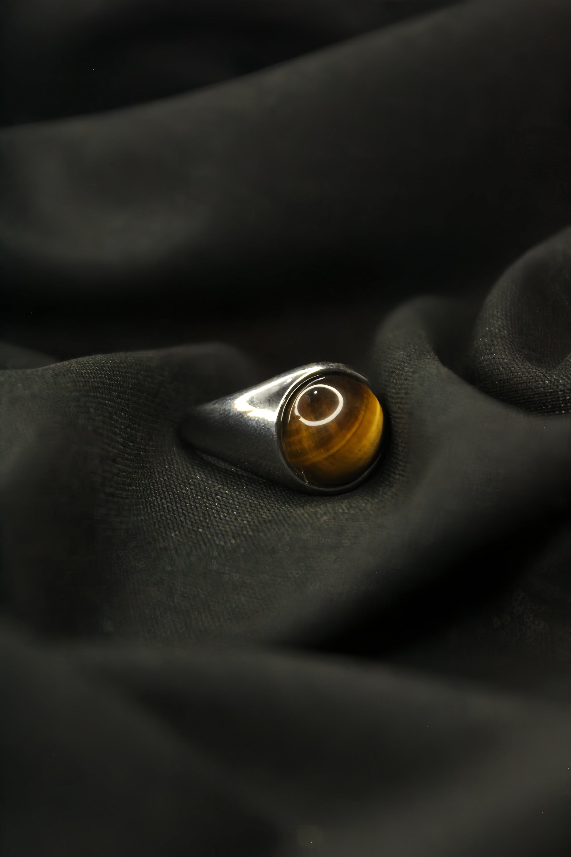 The domed top enhances the natural glow of the stone, creating a sleek and eye-catching