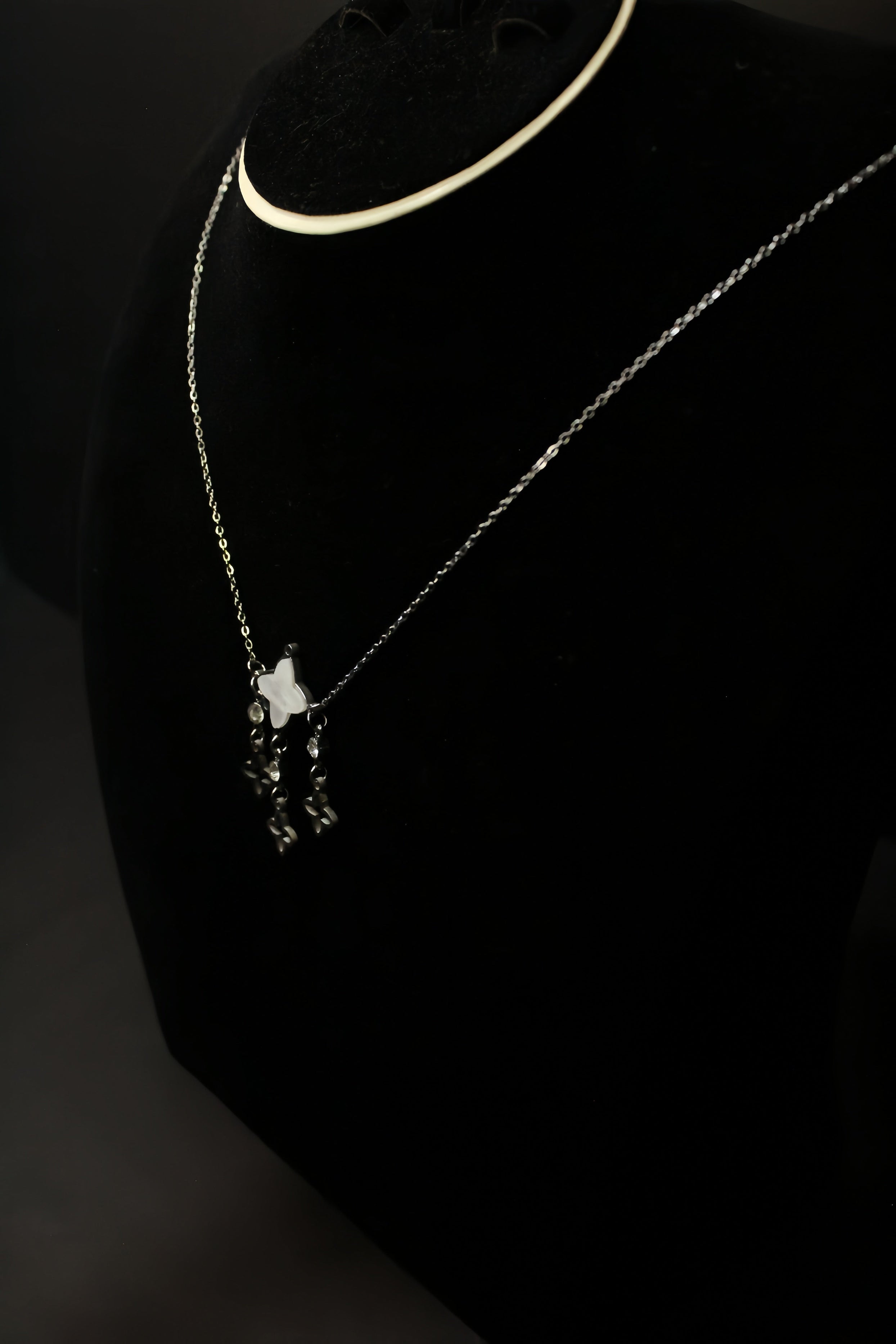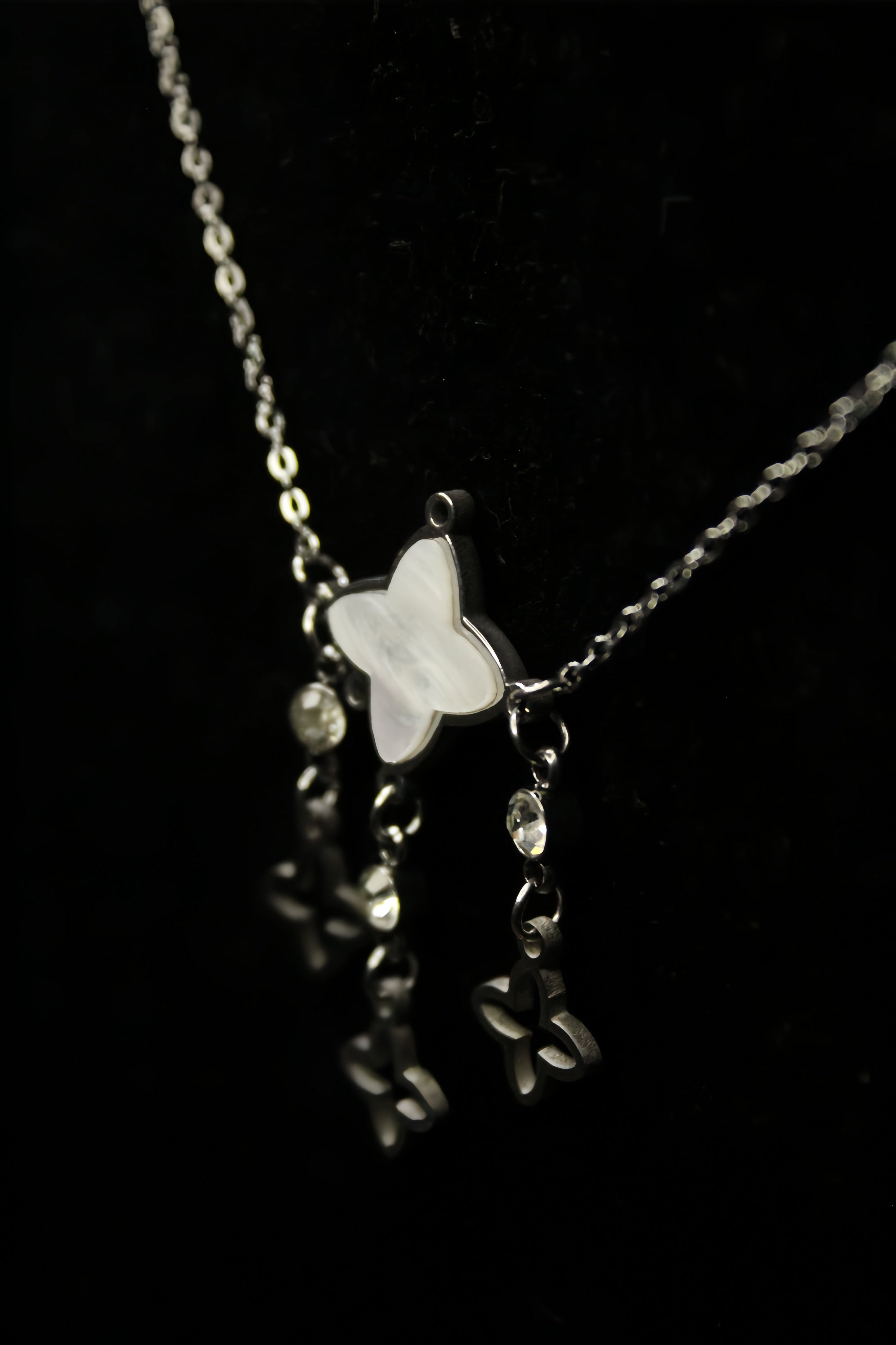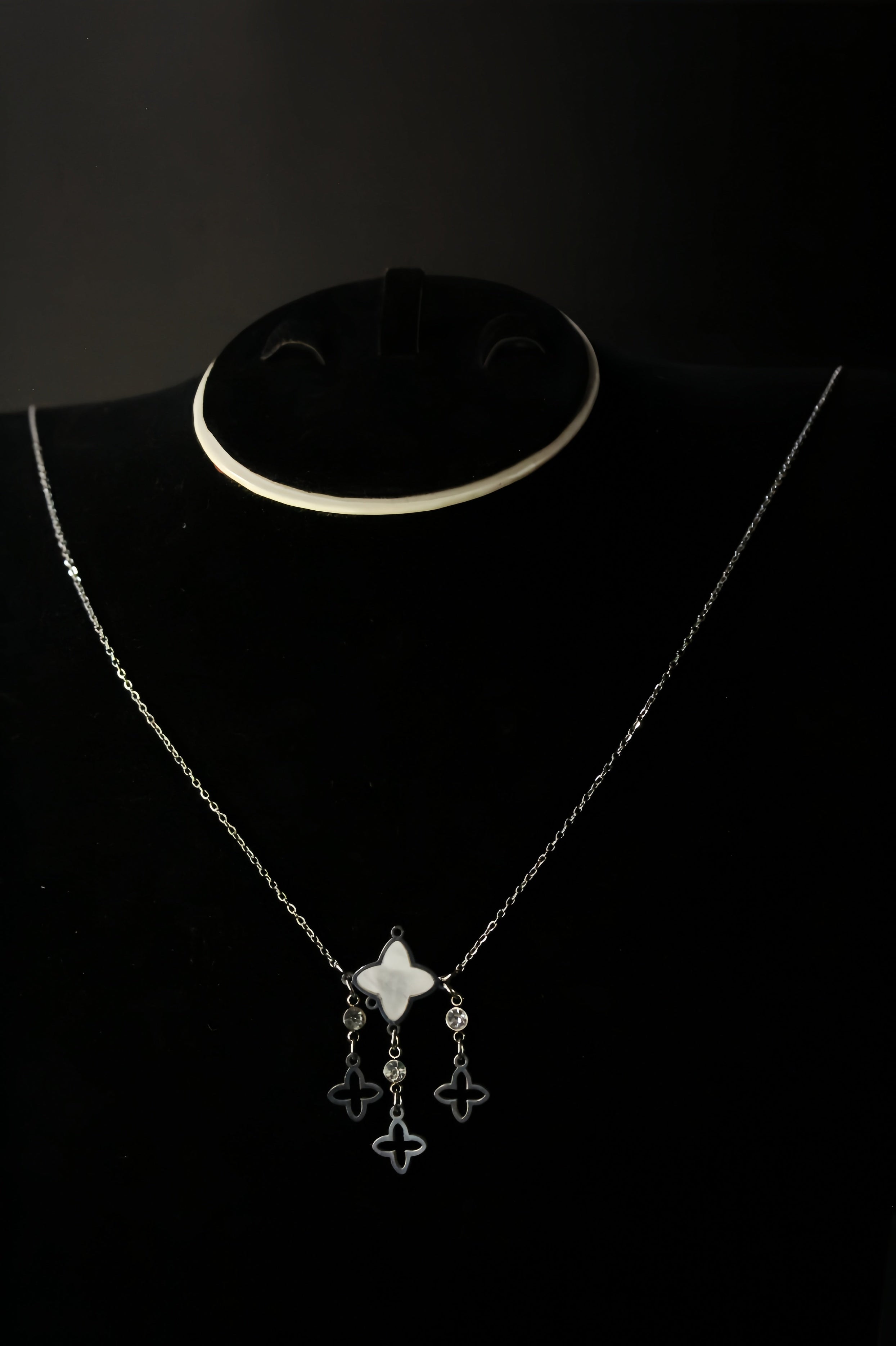 Stainless Steel Necklace With Classy Contrast Clover in Pearl White