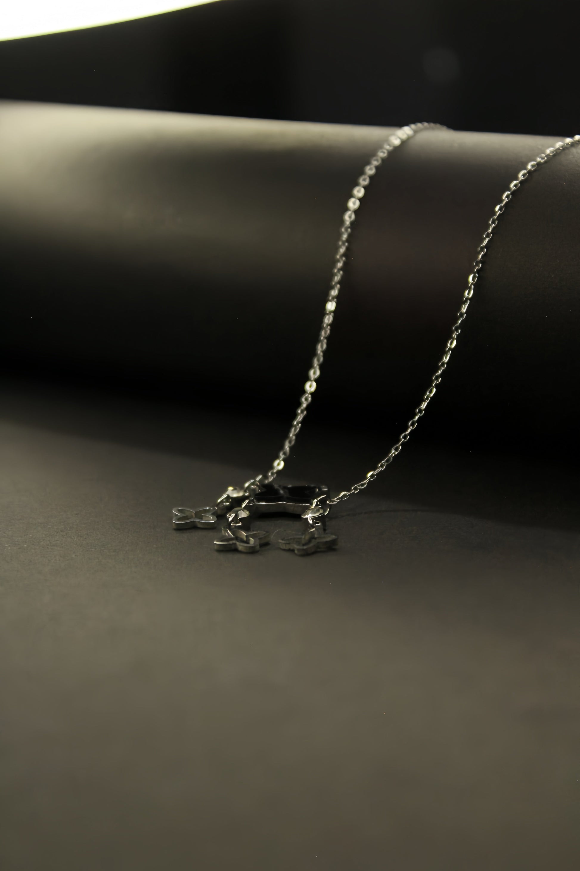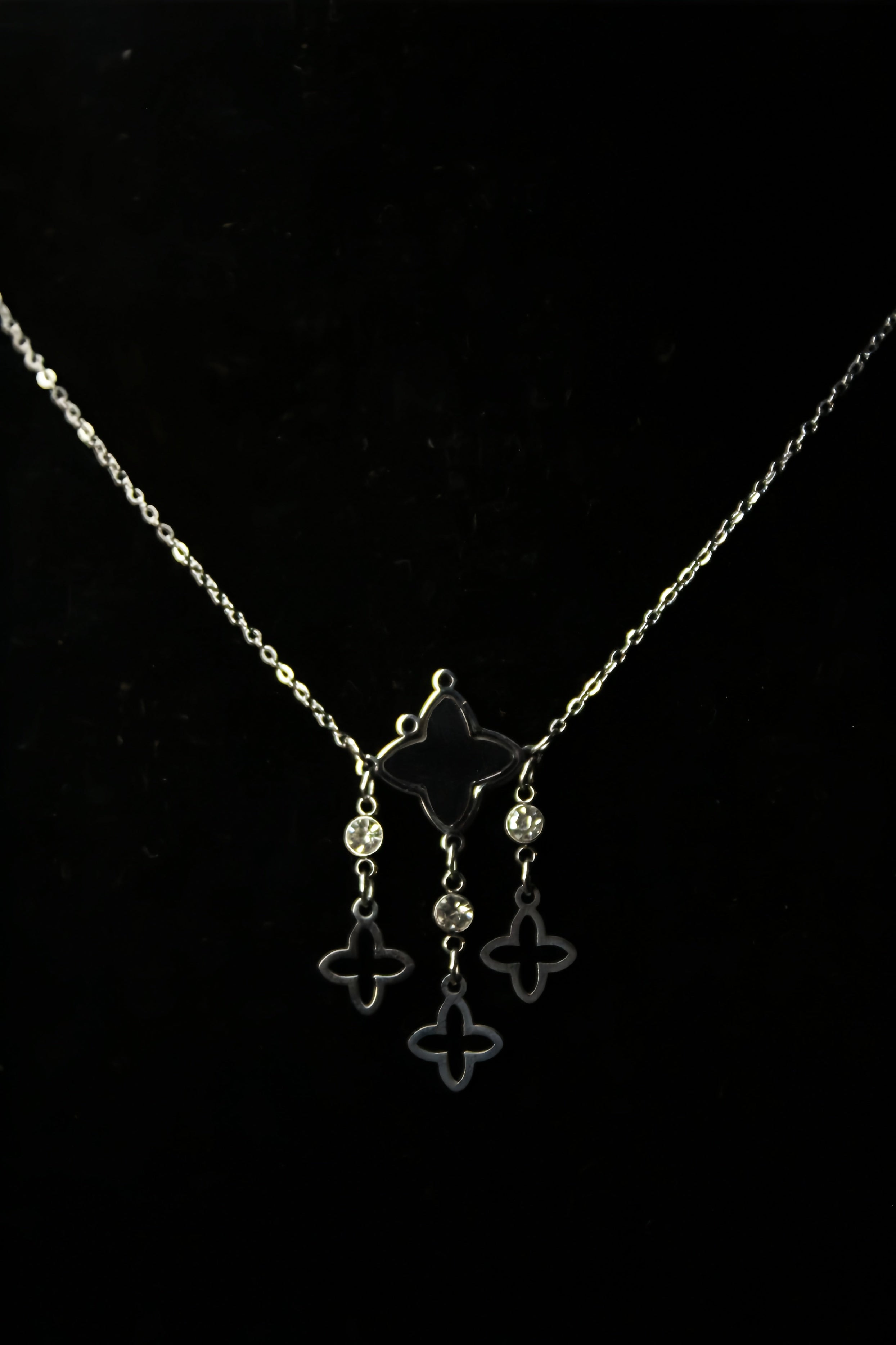 Silver-Black Clover Pendent Necklace