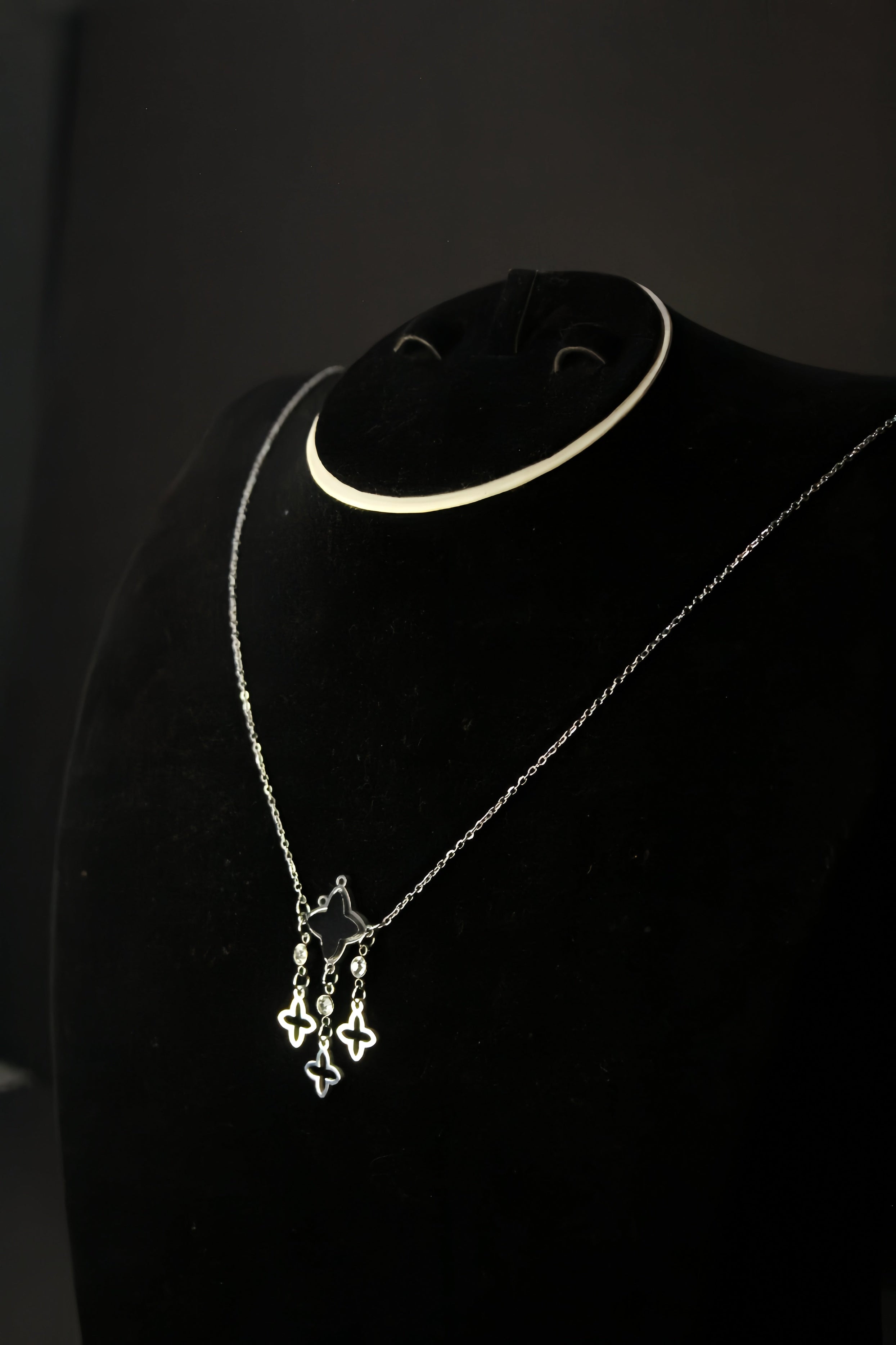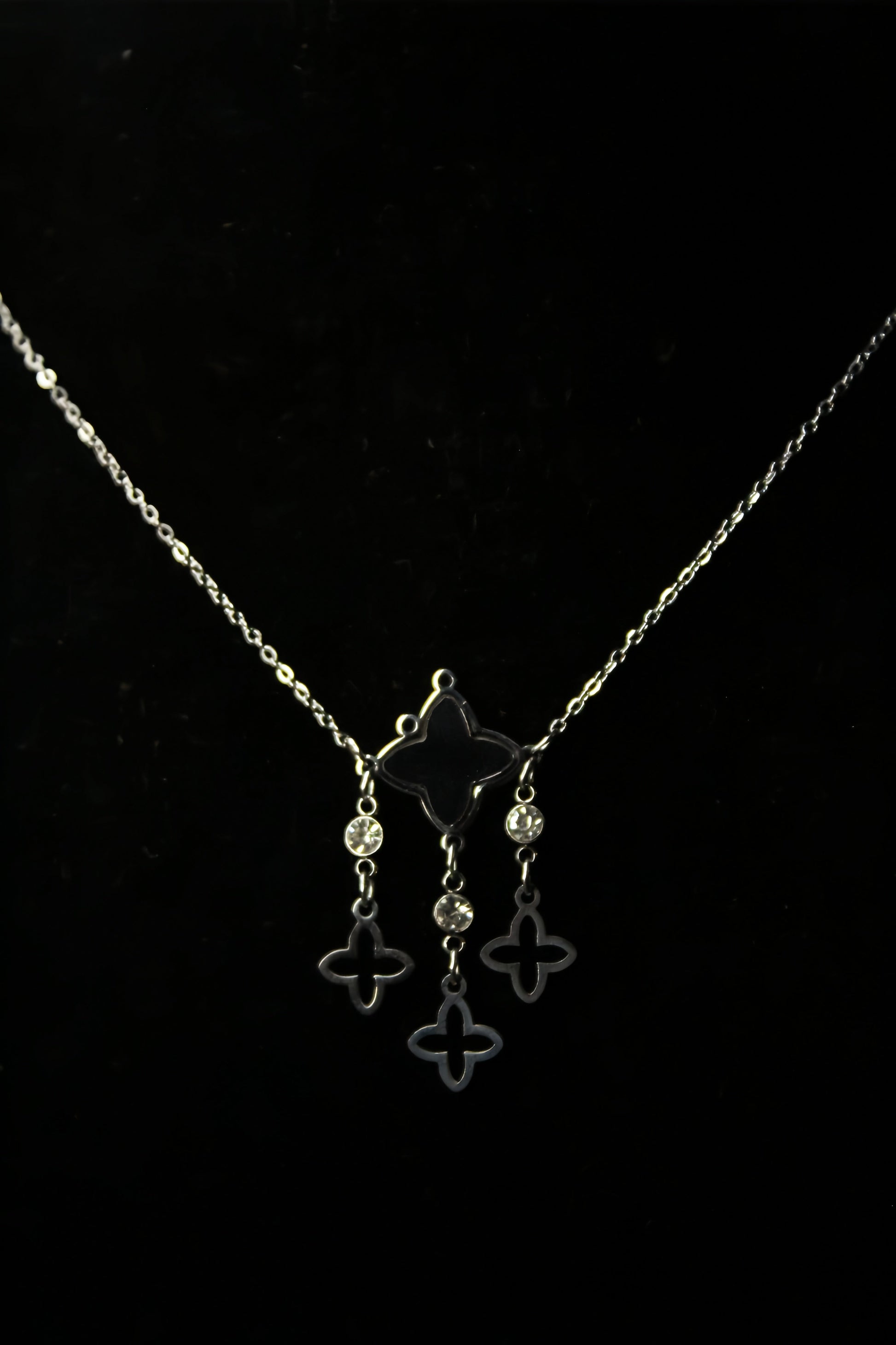 Stainless Steel Necklace With Classy Contrast Clover in Black